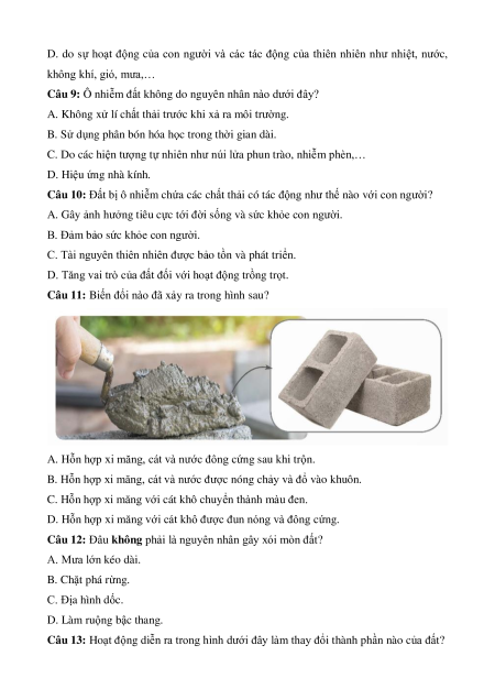 - Ô nhiễm, xói mòn đất và bảo vệ môi trường đất.
