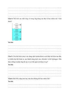 Câu 5: Cho bột kẽm (zinc) vào dung dịch hydrochloric acid thấy bột kẽm tan dần,