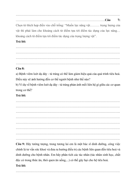 Câu 9: Hãy tưởng tượng, trong tương lai em là một bác sĩ dinh dưỡng, công việc