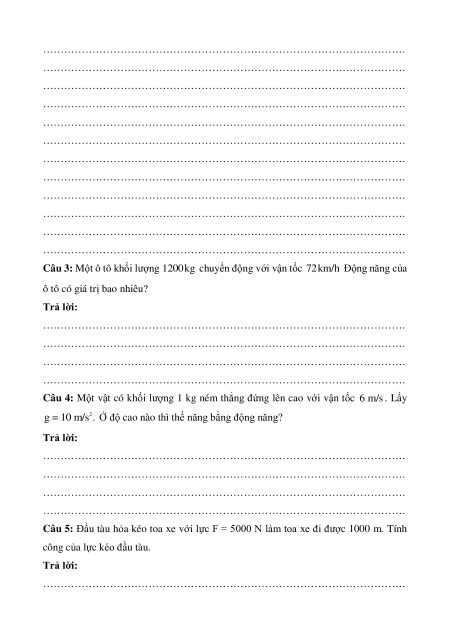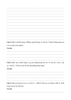 Câu 3: Một ô tô khối lượng 1200kg chuyển động với vận tốc 72km/h Động năng của