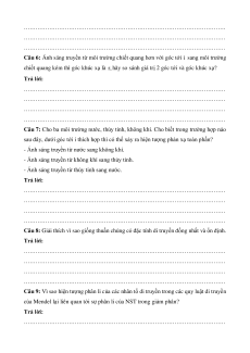 Câu 7: Cho ba môi trường nước, thủy tinh, không khí. Cho biết trong trường hợp nào
