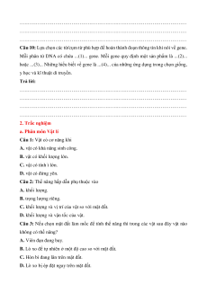 Câu 10: Lựa chọn các từ/cụm từ phù hợp để hoàn thành đoạn thông tin khi nói về gene.
