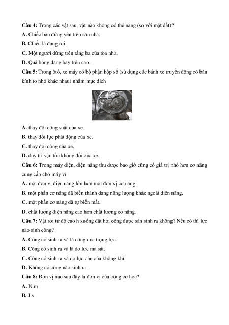 - Phân môn Vật lí: Nội dung ôn tập gồm cơ năng; công và công suất; khúc xạ ánh sáng;