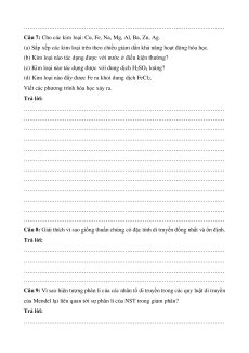Câu 7: Cho các kim loại: Cu, Fe, Na, Mg, Al, Ba, Zn, Ag.