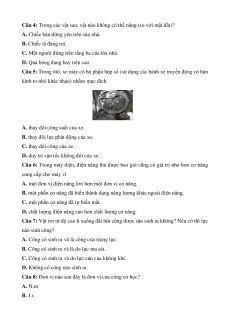 Câu 3: Nếu chọn mặt đất làm mốc để tính thế năng thì trong các vật sau đây vật nào