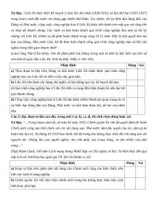 Câu 1: Tổ chức nào được thành lập năm 1919 có vai trò quan trọng đối với phong trào cách mạng thế giới?