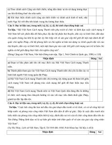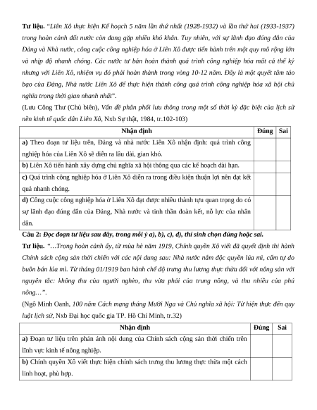 Câu 1: Đọc đoạn tư liệu sau đây, trong mỗi ý a), b), c), d), thí sinh chọn đúng hoặc sai.