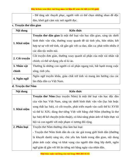 c. Truyện thơ dân gian Nội dung Kiến thức