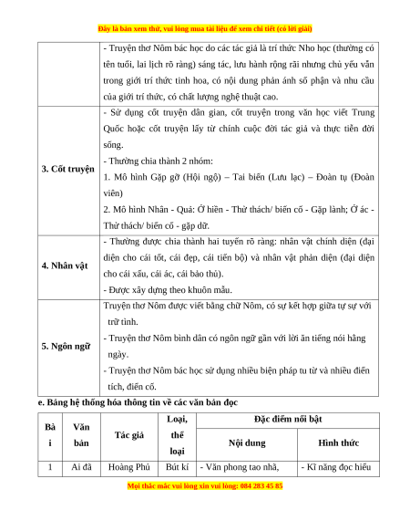 - Nhận biết và phân tích được yếu tố của truyện thơ dân gian và truyện thơ Nôm: cốt