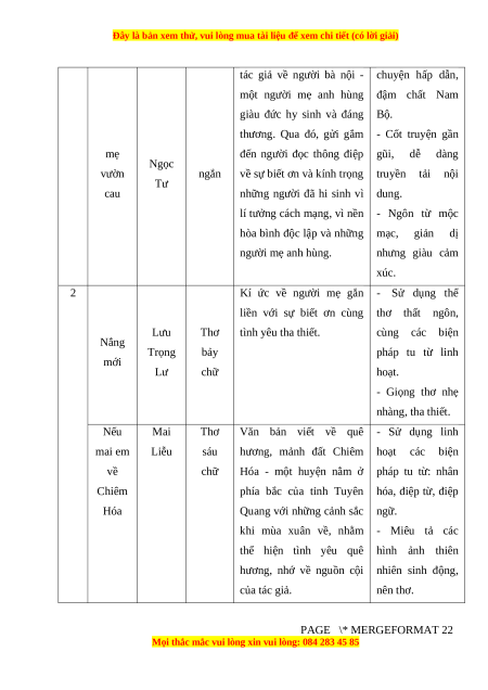 - Nhận biết được một số yếu tố hình thức của thơ sáu chữ, bảy chữ (số chữ ở mỗi