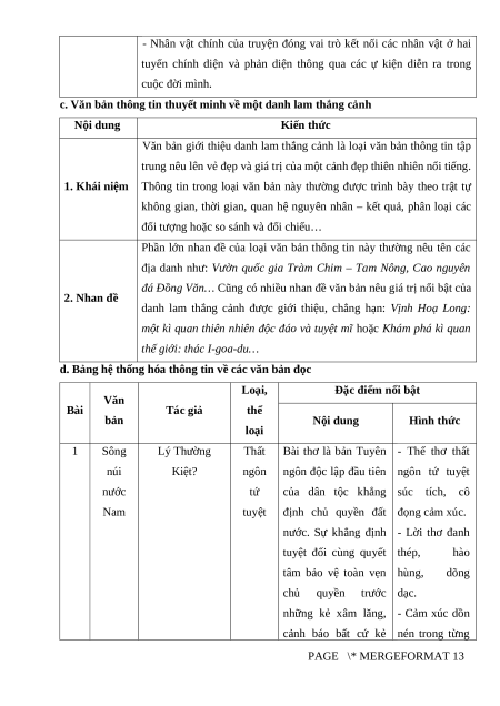 c. Văn bản thông tin thuyết minh về một danh lam thắng cảnh Nội dung Kiến thức