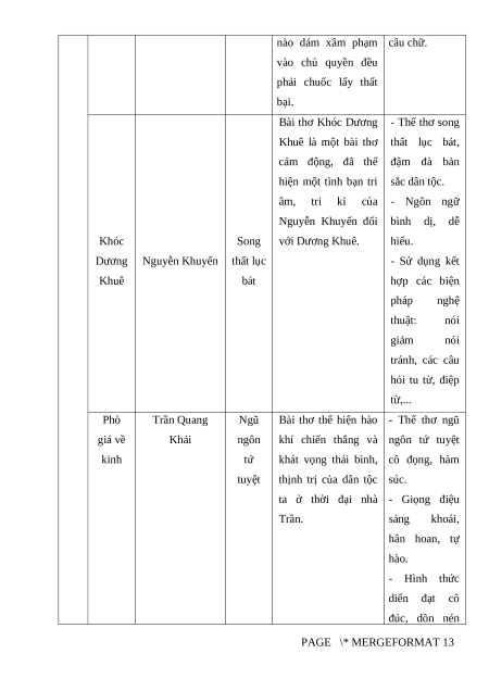 Nguyễn Khuyến đối bình dị, dễ Khóc Song với Dương Khuê. hiểu. Dương Nguyễn Khuyến thất lục - Sử dụng kết Khuê bát hợp các biện pháp nghệ thuật: nói giảm nói tránh, các câu hỏi tu từ, điệp từ,... Phò Trần Quang Ngũ