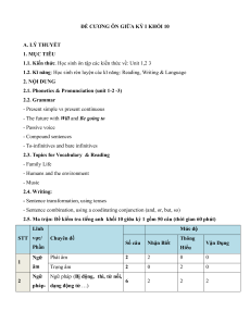 Đề cương ôn tập Giữa kì 1 Tiếng Anh 10 Global success