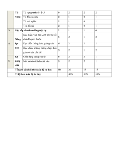 2.5. Ma trận: Đề kiểm tra tiếng anh khối 10 giữa kỳ 1 gồm 50 câu (thời gian 60 phút) Lĩnh Mức độ STT vực/ Chuyên đề Thông Số câu Nhận Biết Vận Dụng Phần Hiểu Ngữ Phát âm 2 2 0 0 1 âm Trọng âm 2 0 2 0 Ngữ