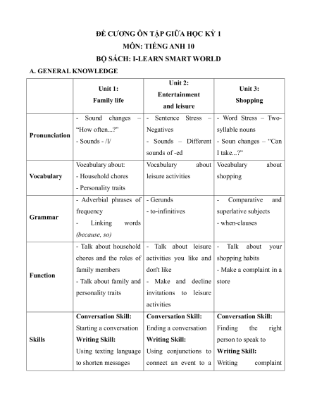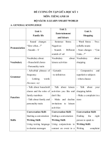 Đề cương ôn tập Giữa kì 1 Tiếng Anh 10 ilearn Smart world