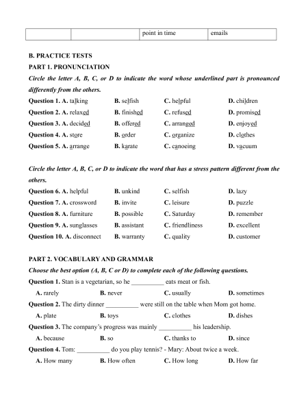 Using texting language Using conjunctions to Writing Skill: to shorten messages connect an event to a Writing complaint point in time emails B. PRACTICE TESTS PART 1. PRONUNCIATION