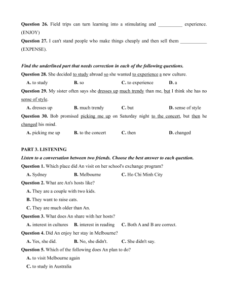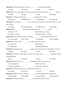 Question 12. I prefer to buy __________ clothes. They last longer even though they cost more. A. quality B. many C. latest D. trendy