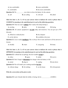 Question 23. Don’t forget to disconnect the charger when the battery is full. A. restart B. plug in C. unplug D. turn down