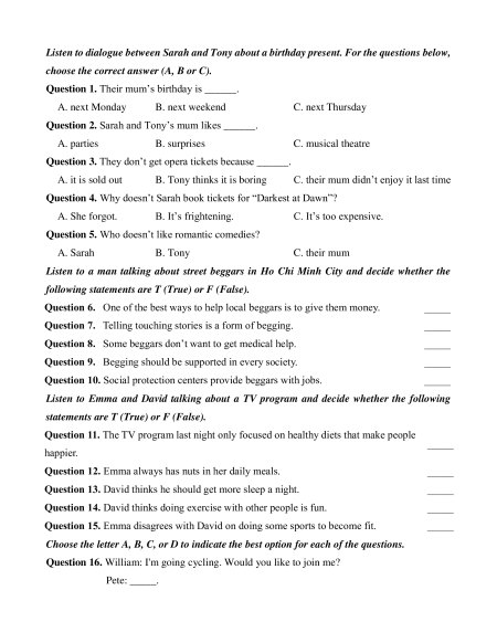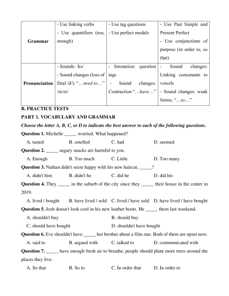Contraction “…have…” - Sound changes: weak forms; “…to…” B. PRACTICE TESTS