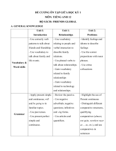Đề cương ôn tập Giữa kì 1 Tiếng Anh 12 Friends Plus
