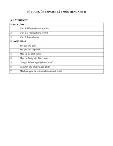 ĐỀ CƯƠNG ÔN TẬP GIỮA KỲ 1 MÔN TIẾNG ANH 12 A. LÝ THUYẾT I. TỪ VỰNG 1