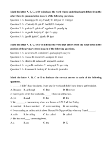 Question 1. A. decompose B. eco-friendly C. leftover D. compost