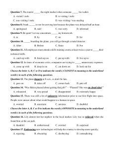 Question 8. Frank _____ to me for arriving late because the plane was delayed half an hour. A. apologised B. said C. was sorry D. informed