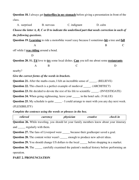 Question 30. The _____ carefully examined the patient's medical history before performing an operation. PART 2. PRONUNCIATION
