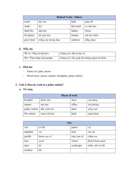 3. Unit 2: Does he work in a police station? a. Từ vựng Places of work hospital bệnh viện store cửa hàng airport sân bay office văn phòng