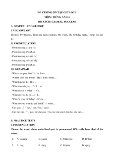 Đề cương ôn tập Giữa kì 1 Tiếng Anh 4 Global Success