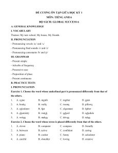 - Pronouncing consonants /b/ and /p/ III. GRAMMAR - Present simple - Adverbs of frequency - Possessive case - Preposition of place - Present continuous B. PRACTICE TESTS I. PRONUNCIATION