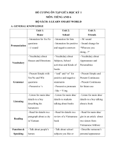 ĐỀ CƯƠNG ÔN TẬP GIỮA HỌC KỲ 1 MÔN: TIẾNG ANH 6