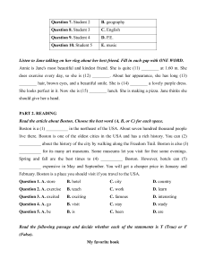 February. Boston is a place you should visit if you travel to the USA. Question 1. A. store B. hotel C. city D. country