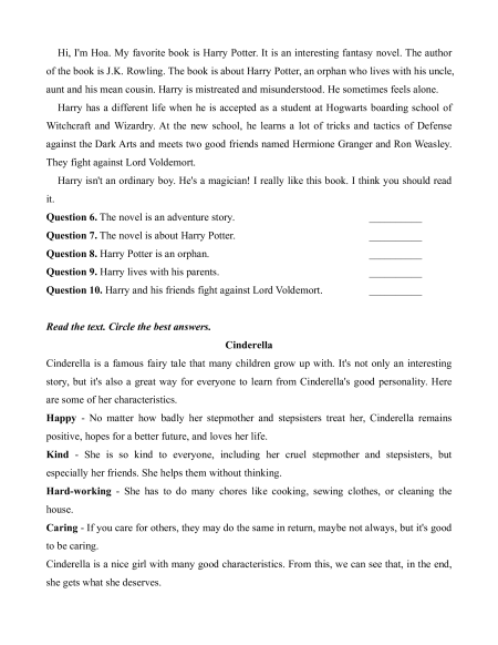 Hi, I'm Hoa. My favorite book is Harry Potter. It is an interesting fantasy novel. The author