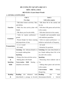 ĐỀ CƯƠNG ÔN TẬP GIỮA HỌC KỲ 1 MÔN: TIẾNG ANH 8