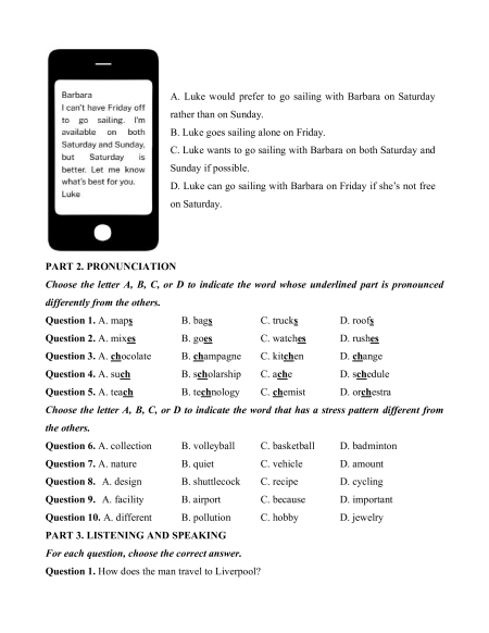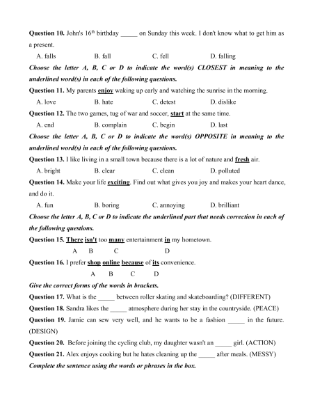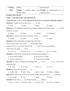 Writing: a passage about your Writing: an announcement for a favorite hobby country festival B. PRACTICE TESTS PART 1. VOCABULARY AND GRAMMAR