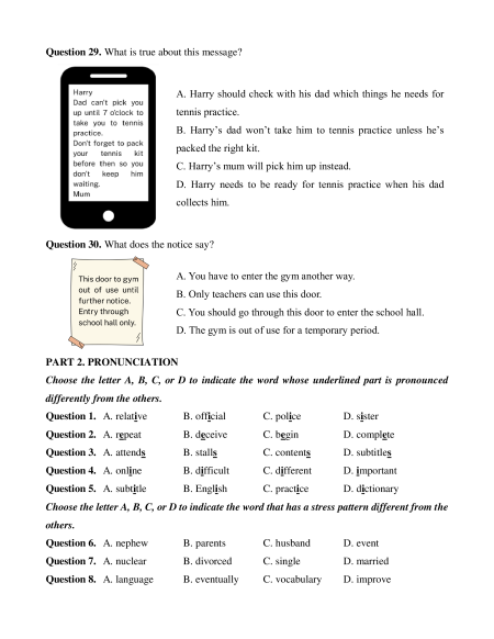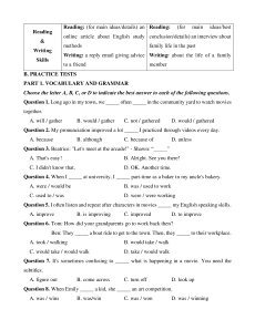 Writing: a reply email giving advice Writing: about the life of a family Skills to a friend member B. PRACTICE TESTS