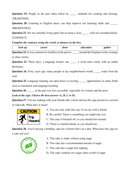 Question 19. People in the past often relied on _____ methods for cooking and farming. (TRADITION)