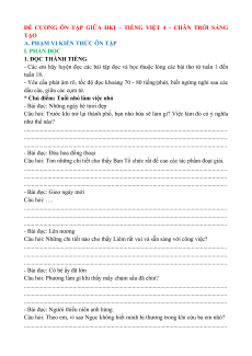 ĐỀ CƯƠNG ÔN TẬP GIỮA HKI – TIẾNG VIỆT 4 – CHÂN TRỜI SÁNG TẠO