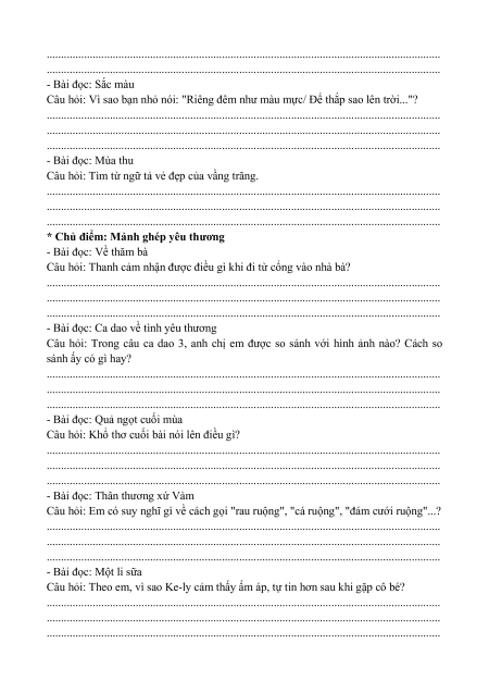 - Các em hãy luyện đọc các bài tập đọc và học thuộc lòng các bài thơ từ tuần 1 đến tuần 18.