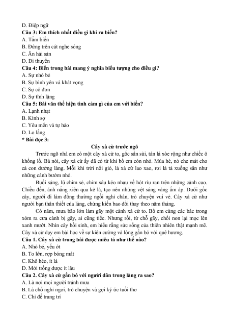 Câu 1: Biển được miêu tả vào mấy thời điểm trong ngày? A. Một B. Hai C. Ba D. Bốn