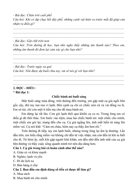 . . . . . . . . . . . . . . . . . . . . . . . . . . . . . . . . . . . . . . . . . . . . . . . . . . . . . . . . . . . . . . . . . . . . . 2. ĐỌC - HIỂU: * Bài đọc 1: