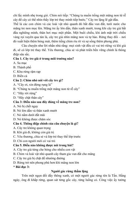 nhỏ muốn cảm ơn cây đã che bóng cho chúng ta bao lâu nay.” Cây tre già im lặng,