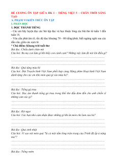ĐỀ CƯƠNG ÔN TẬP GIỮA HK I – TIẾNG VIỆT 5 – CHÂN TRỜI SÁNG TẠO