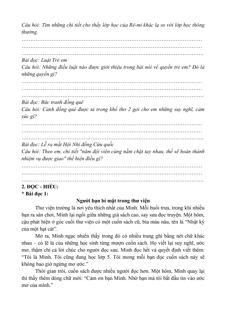 …………………………………………………………………………………………. 2. ĐỌC - HIỂU: * Bài đọc 1: