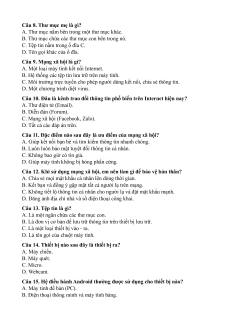Câu 10. Đâu là kênh trao đổi thông tin phổ biến trên Internet hiện nay? A. Thư điện tử (Email). B. Diễn đàn (Forum).