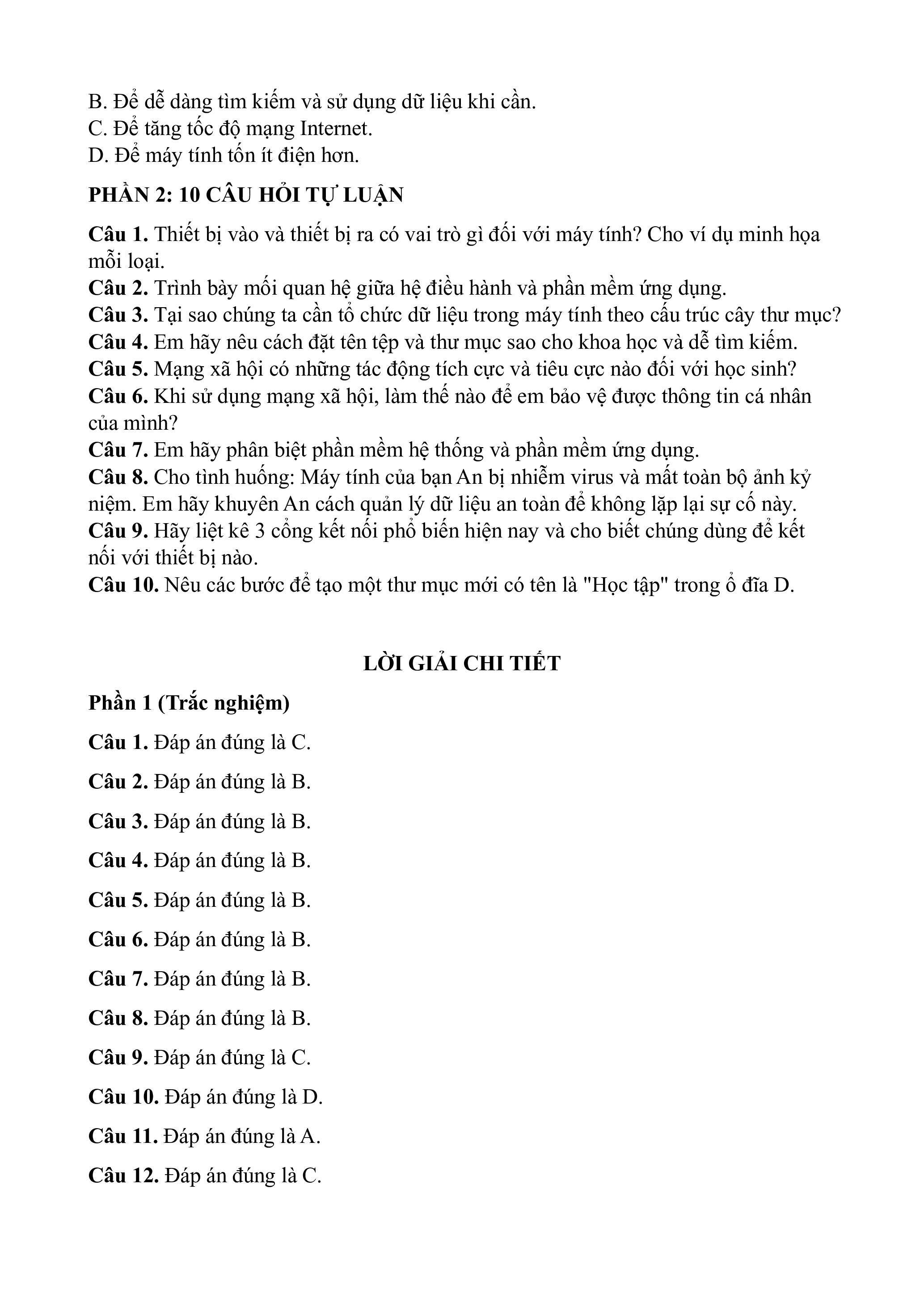 Câu 7. Để quản lý dữ liệu hiệu quả, máy tính tổ chức lưu trữ thông tin theo cấu trúc: A. Chỉ có tệp tin.