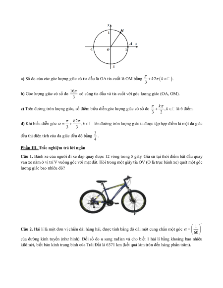b) Góc lượng giác có số đo 16 có cùng tia đầu và tia cuối với góc lượng giác (OA, OM). 3