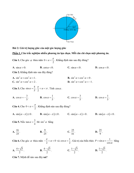 Bài 2: Giá trị lượng giác của một góc lượng giác