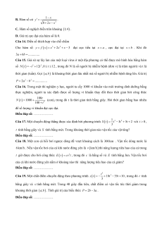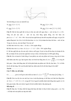 - Vận dụng đạo hàm và khảo sát hàm số để giải quyết một số vấn đề liên quan đến thực tiễn. II. BÀI TẬP ÔN LUYỆN A. TRẮC NGHIỆM